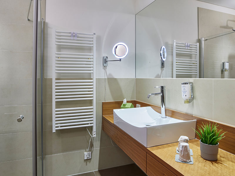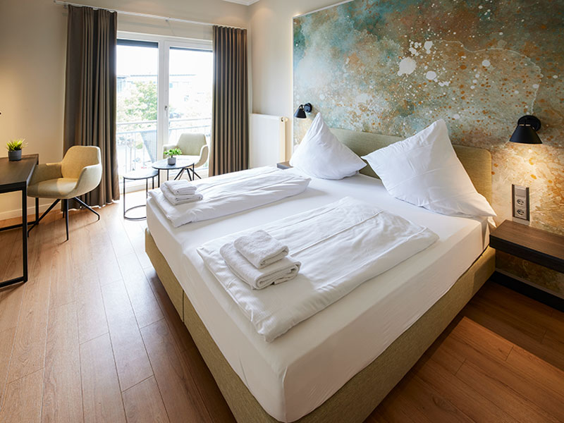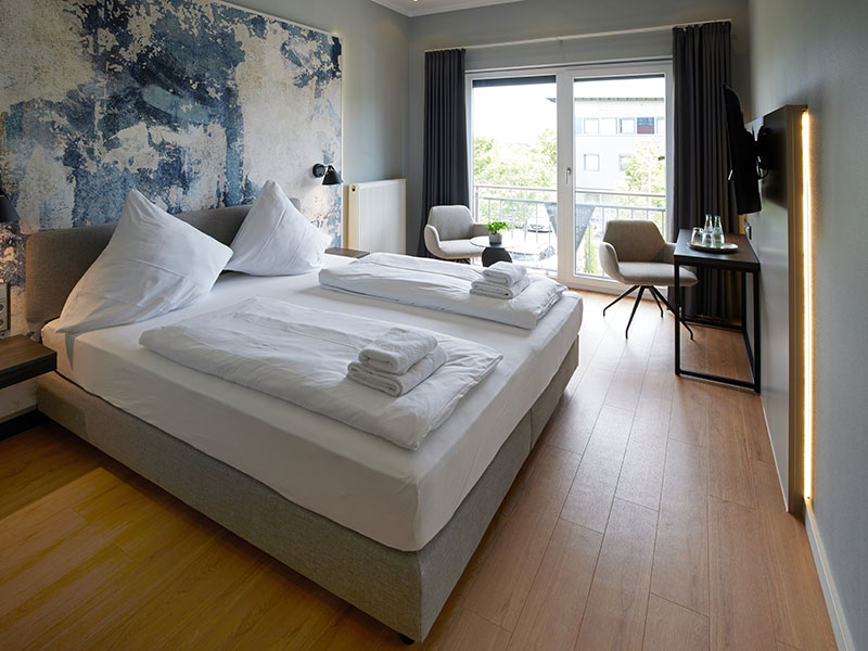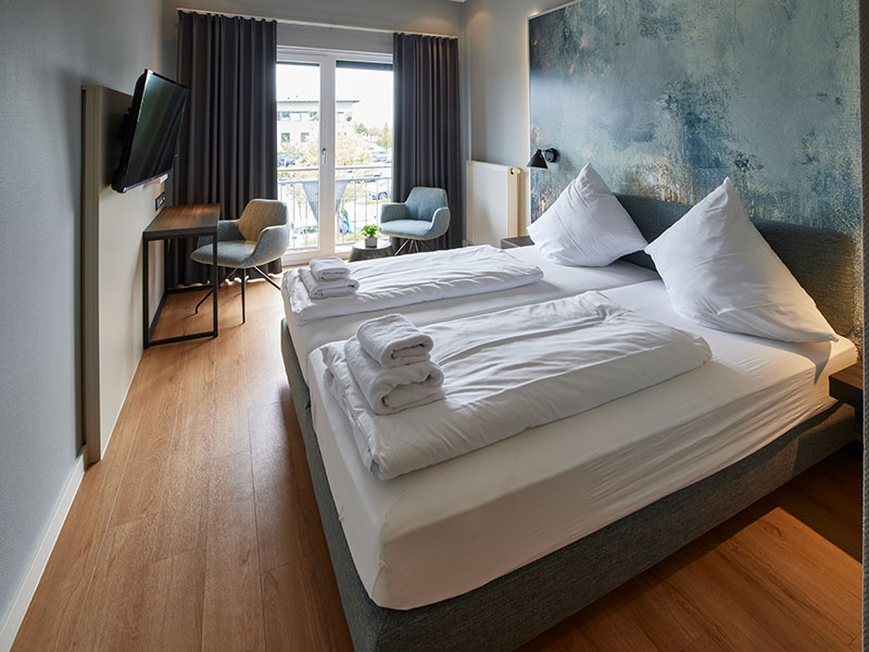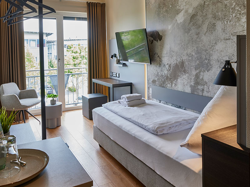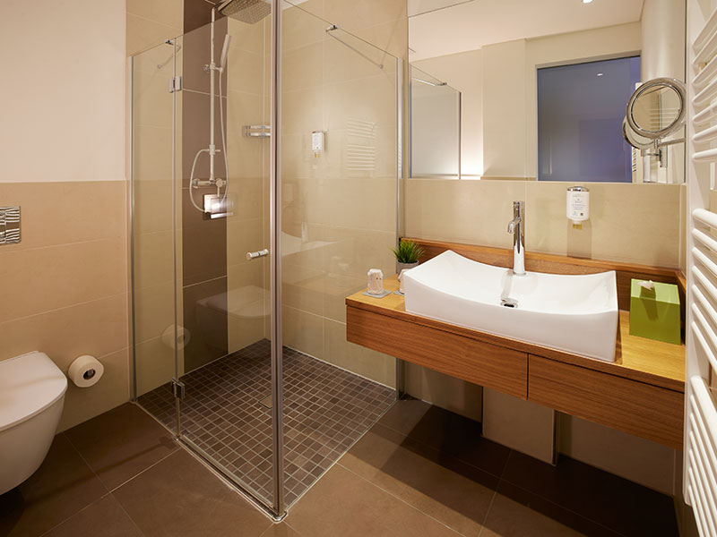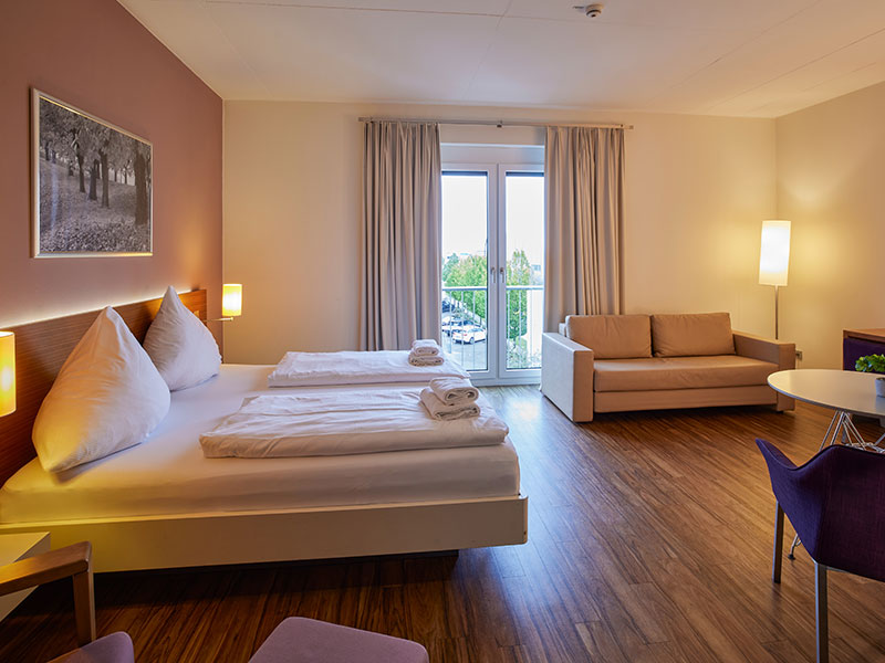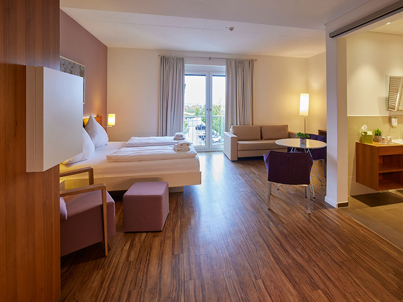 In unseren modern eingerichteten Zimmern der Kategorie Superior PLUS (im Neubau) finden Sie komfortable Erholung nach einem anstrengenden Arbeitstag, mit einer barrierefreien Ausstattung.