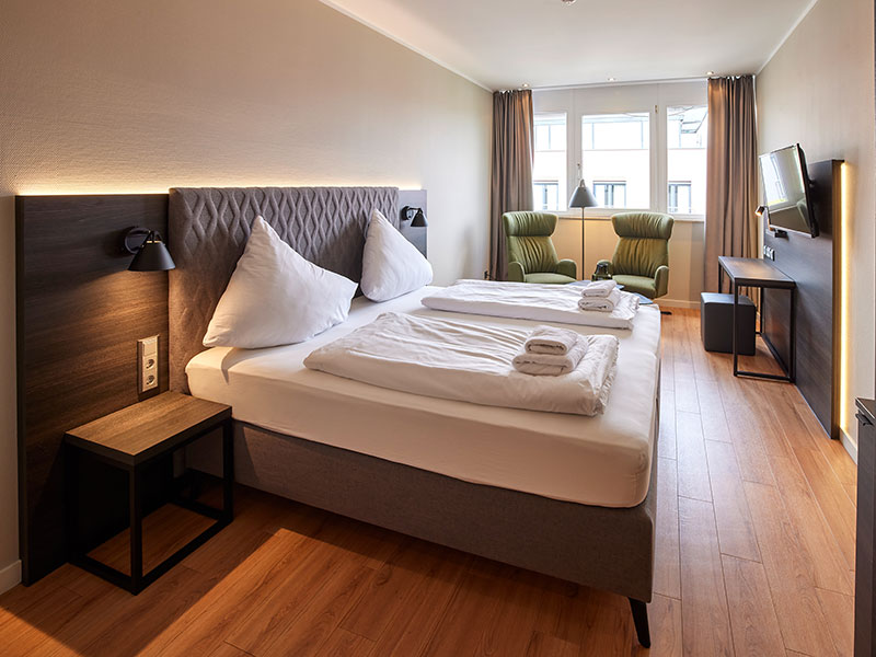In unseren modern eingerichteten Zimmern der Kategorie Superior (im Neubau) finden Sie komfortable Erholung nach einem anstrengenden Arbeitstag.
